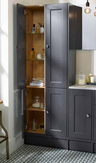 The furniture colours shown in this brochure are representative only and can be affected by a multitude of factors such as lighting and surrounding items. If you are unsure we would recommend obtaining a swatch. All timber finishes featured within this brochure are timber effect. Please note that there may be some slight variation between carcasses, doors and worktops due to different manufacturing techniques used. All dimensions are approximate, especially with ceramic sanitaryware where a tolerance of +/- 2% must be allowed.