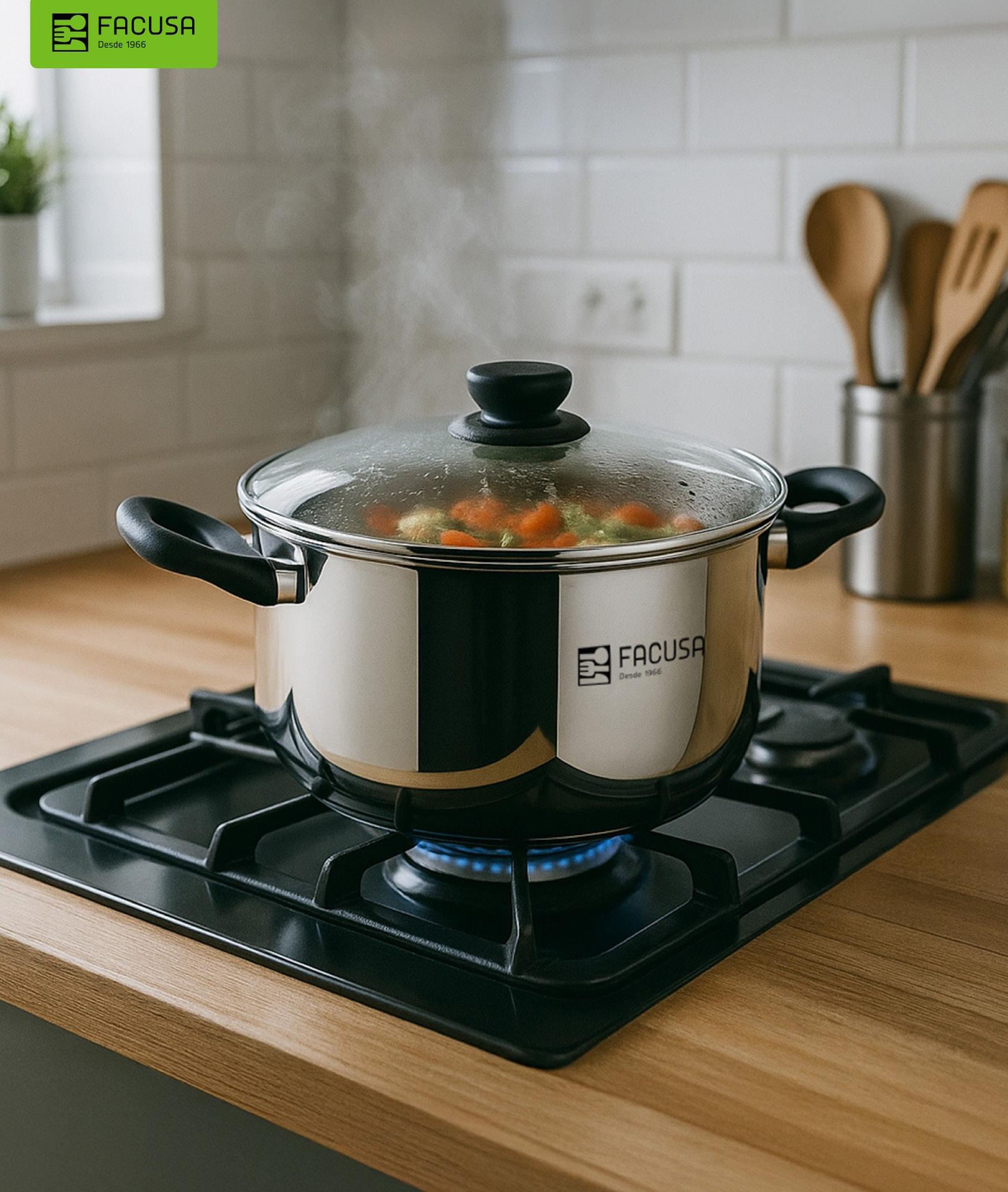 Además, nuestros productos están pensados para adaptarse a diferentes tipos de cocinas, incluyendo cocinas a gas, eléctricas y de inducción. FACUSA se ha mantenido vigente durante décadas gracias a su capacidad de innovar y ofrecer productos que responden a las necesidades reales del consumidor.