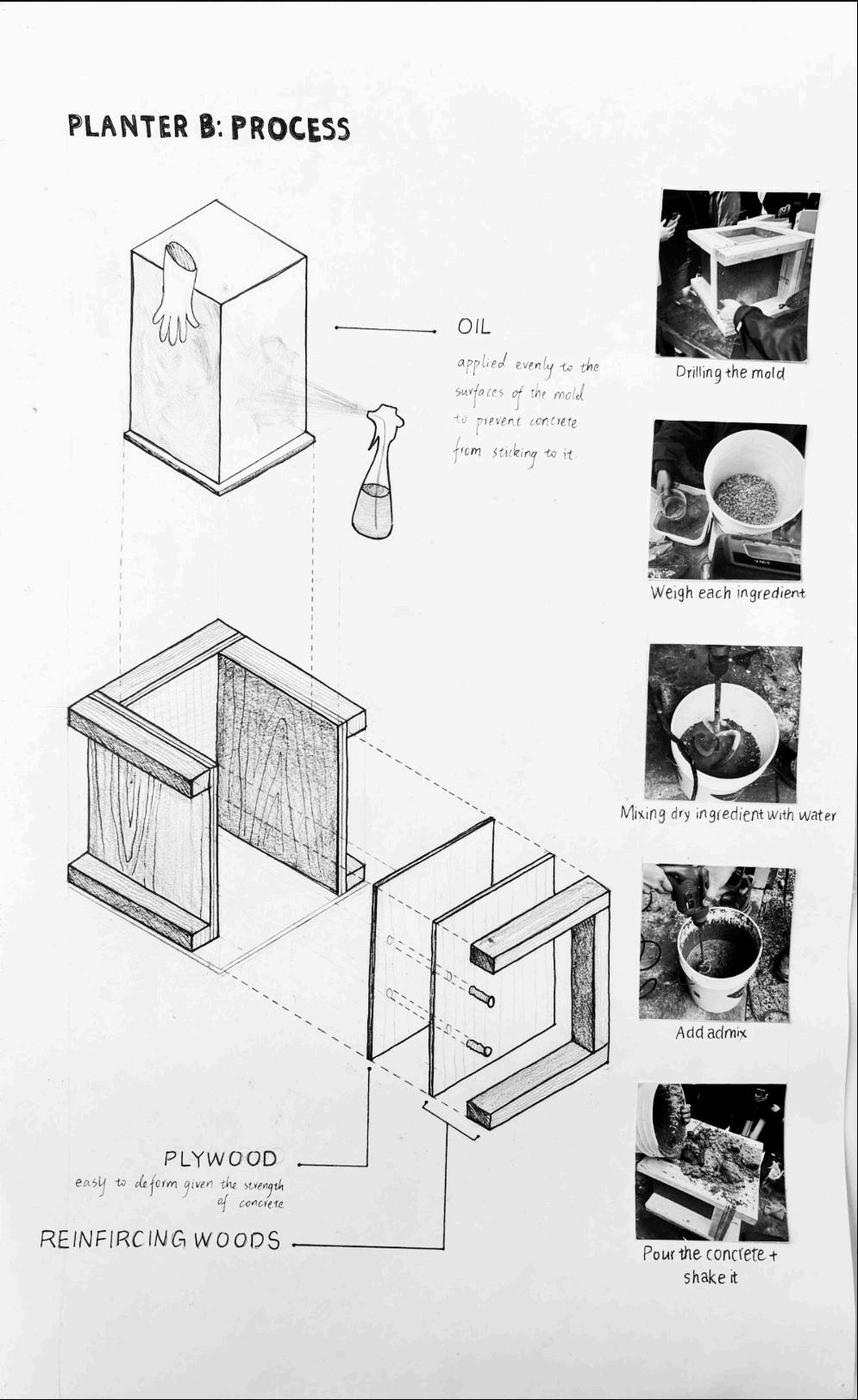 In this exploration of wooden joints, my team and I examined what contributes to structural strength through multiple iterations, considering friction, surface area, and environmental forces. In the concrete component of the study, we experimented with the mixture to create exposed aggregate concrete and documented our findings through sketches on the sheet.