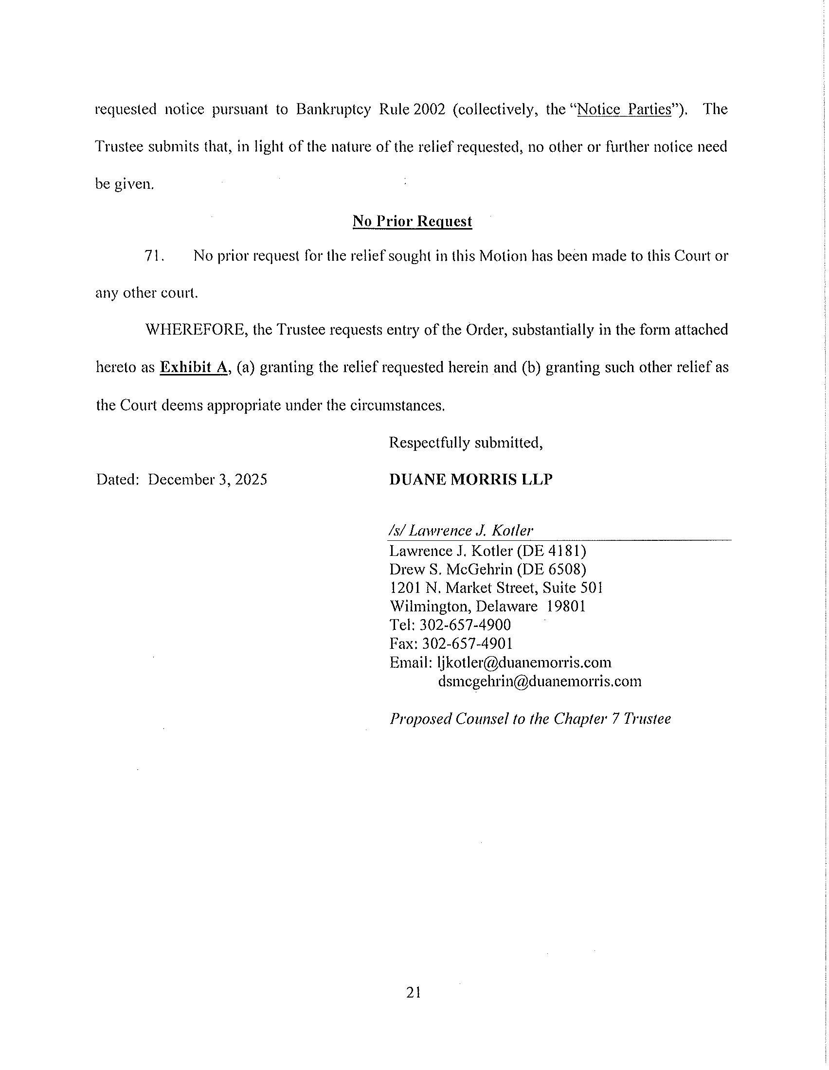 Proposed Counsel to the Chapter 7 Trustee
