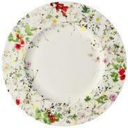Der florale Dekor „Grand Air“ der Schweizer Textildesignerin Regula Stüdli ist so leicht und frisch wie ein Naturerlebnis in frischer Bergluft. Wie vom Winde verweht und von der Natur zu einem vielfarbigen Blumenensemble kombiniert, verbinden sich würzige Kräuter und essbare Blüten in kleinen Bündeln arrangiert, lose hingestreut oder kreisförmig zu Ornamenten angeordnet, auf der Form Brillance und verschmelzen mit ihr zu einer sinnlichen Einheit.