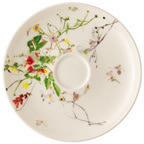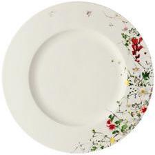 Der florale Dekor „Grand Air“ der Schweizer Textildesignerin Regula Stüdli ist so leicht und frisch wie ein Naturerlebnis in frischer Bergluft. Wie vom Winde verweht und von der Natur zu einem vielfarbigen Blumenensemble kombiniert, verbinden sich würzige Kräuter und essbare Blüten in kleinen Bündeln arrangiert, lose hingestreut oder kreisförmig zu Ornamenten angeordnet, auf der Form Brillance und verschmelzen mit ihr zu einer sinnlichen Einheit.