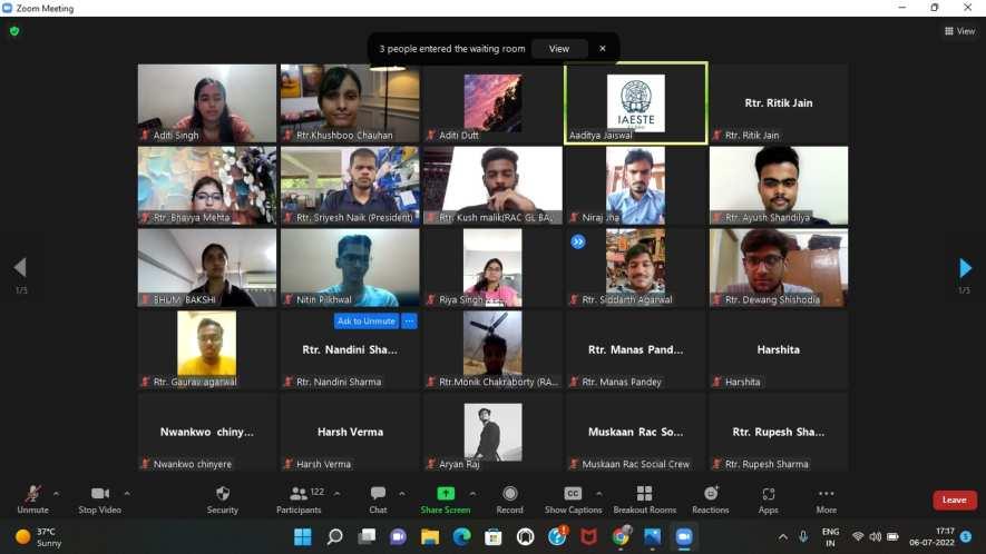 TheOnlineeventwasalignedwiththeNational Start Up Day, cultivating the ideas of Entrepreneurship and Start-Ups in our club members.