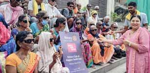 A kidney health-cum-wellness camp was held in partnership with Vivacity Hospital for frontline workers. BP, blood sugar, BMI, ear check, breathing test, and kidney function tests were done. Health cards with test results were given.