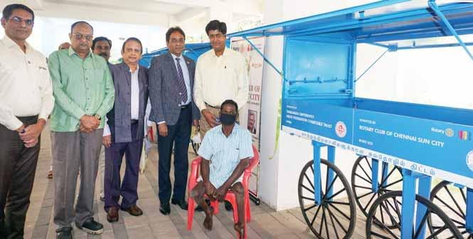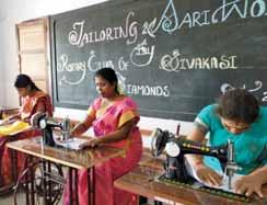 Training in tailoring and other crafts were provided to the staff at the Rotary Matric HS School, Viswanatham village. Umbrellas worth `2,750 were donated to street vendors.