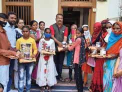 Drawing material and warm jackets were distributed to inmates of Baal Anaath Sewa Ashram at Kudari village to mark World Children’s Day.