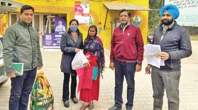 Gift hampers and dress material were distributed to underprivileged families during Pongal festival.