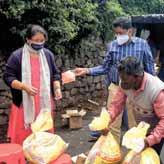 Rice bags and grocery items were given to marginalised and physicallychallenged people hit by the pandemic.