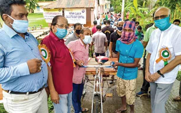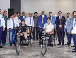 Tricycles were donated to three physicallychallenged persons at the installation in the presence of DG Ashok Aggarwal. The club aims to donate 50 tricycles this year.