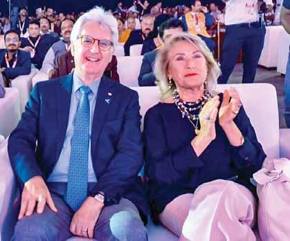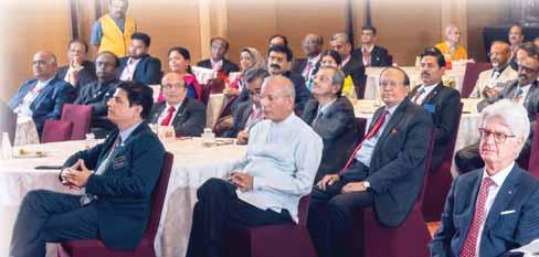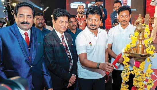 Above: TN Deputy CM Udhayanidhi Stalin presents the Lifetime Achievement Award to PSNA Institution pro-chairman RSK Raguraam. RI President Francesco Arezzo and RI Director Muruganandam are present.