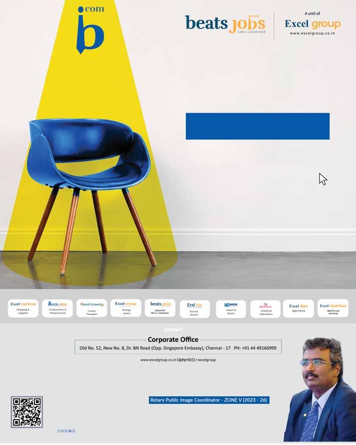 ADVT. Registered No. TN/CCN/359/2021-2023 Licensed to post WPP No.TN/PMG(CCR)/WPP 421/21-23 Total number of pages in this monthly issue, including cover, 84. Price: `40 Regd with RNI TNHIN/2001/05271. Rotary Samachar Published 1st week of every month. Posted at Egmore RMS Patrika Channel. Date of posting: 6–12 every month.