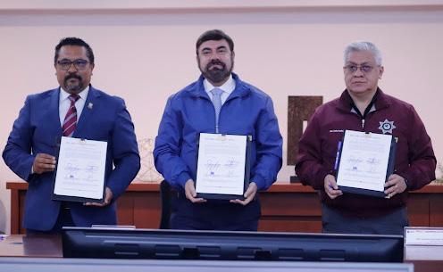 Con el objetivo de generar nuevas obras públicas y servicios relacionados con las mismas, el Secretario de Seguridad del Estado de México, Cristóbal Castañeda Camarillo y Carlos Maza Lara, Titular de la Secretaría de Desarrollo e Infraestructura (SEDUI), firmaron el convenio “Marco de Coordinación para la Ejecución por Encargo de Obras Públicas”.