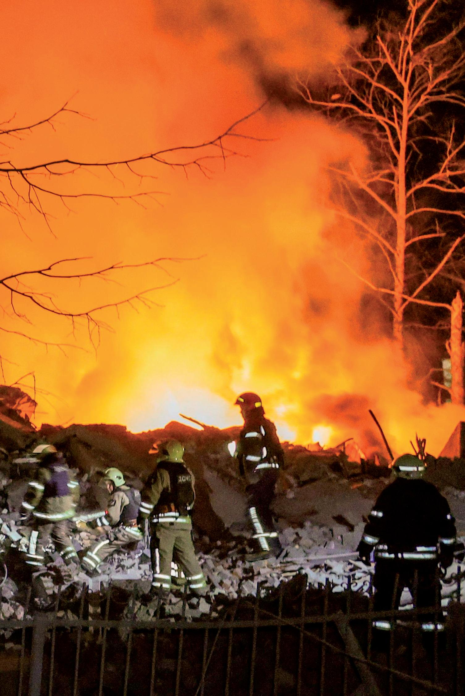 parcial del edificio, lo que dificultó las labores de rescate. Durante las primeras horas posteriores al bombardeo, los equipos de emergencia continuaban retirando restos de concreto y estructuras metálicas para localizar a posibles sobrevivientes.