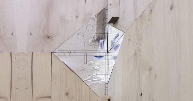 X-SEAL avoids direct acoustic transmission through the air caused by the “emptying” of the mass of the node due to the 45° cut on the CLT panel.