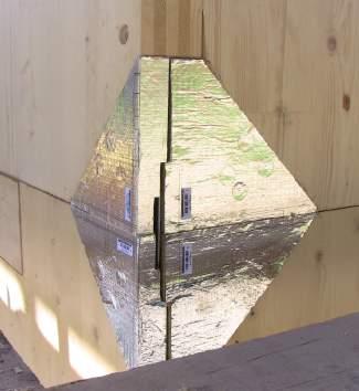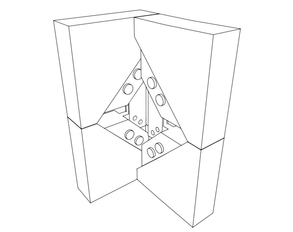 X-SEAL avoids direct acoustic transmission through the air caused by the “emptying” of the mass of the node due to the 45° cut on the CLT panel.