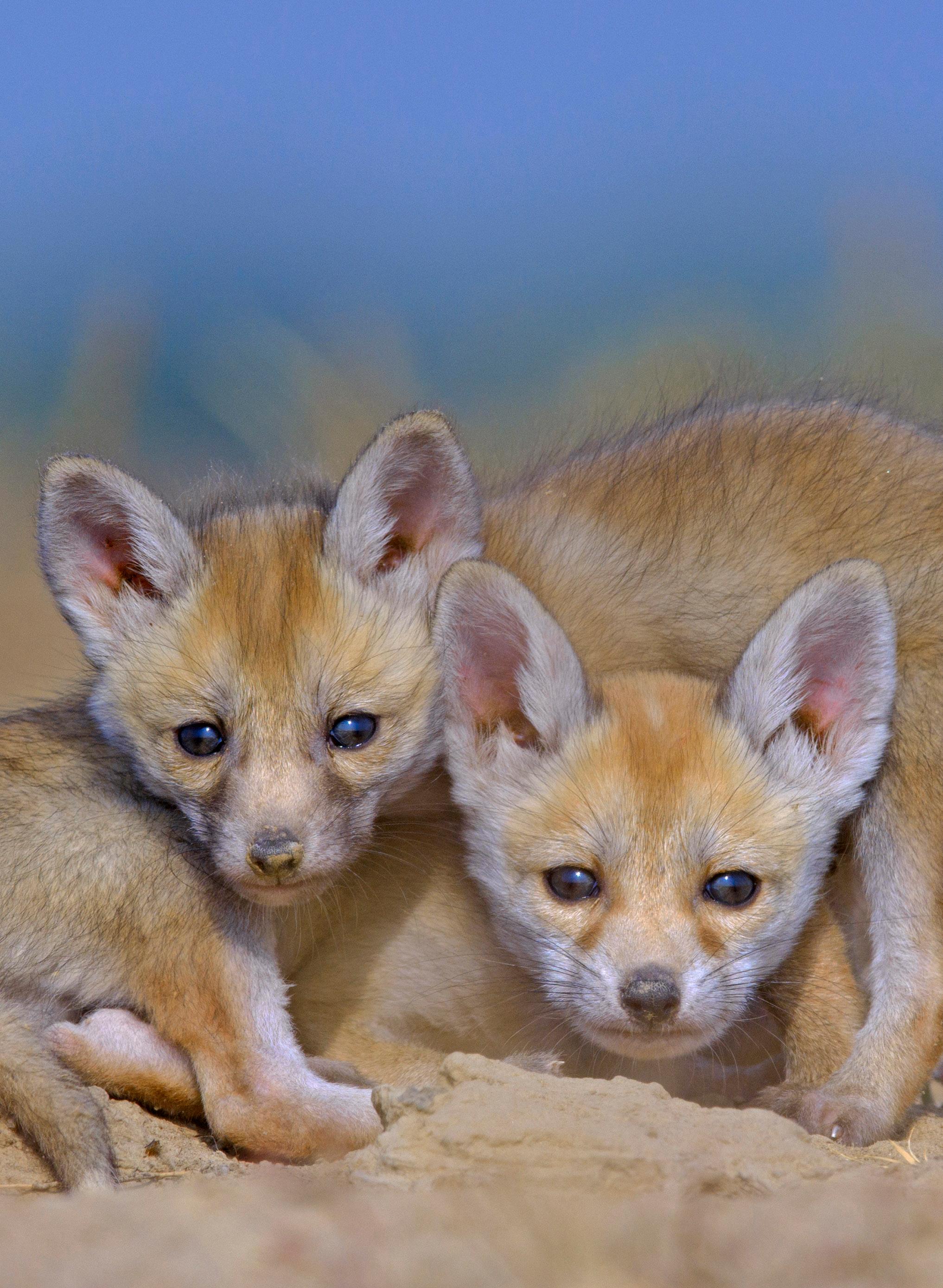 Desert fox pups in the Little Rann of Kutch in Gujarat, a saline desert that transforms into a wetland during the monsoon