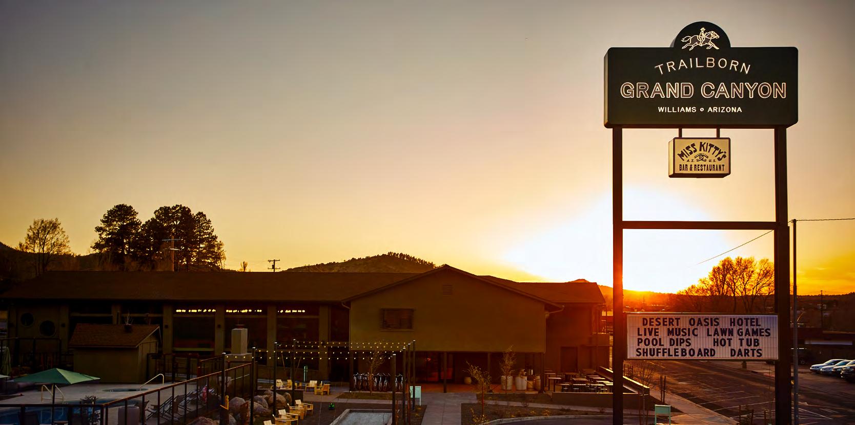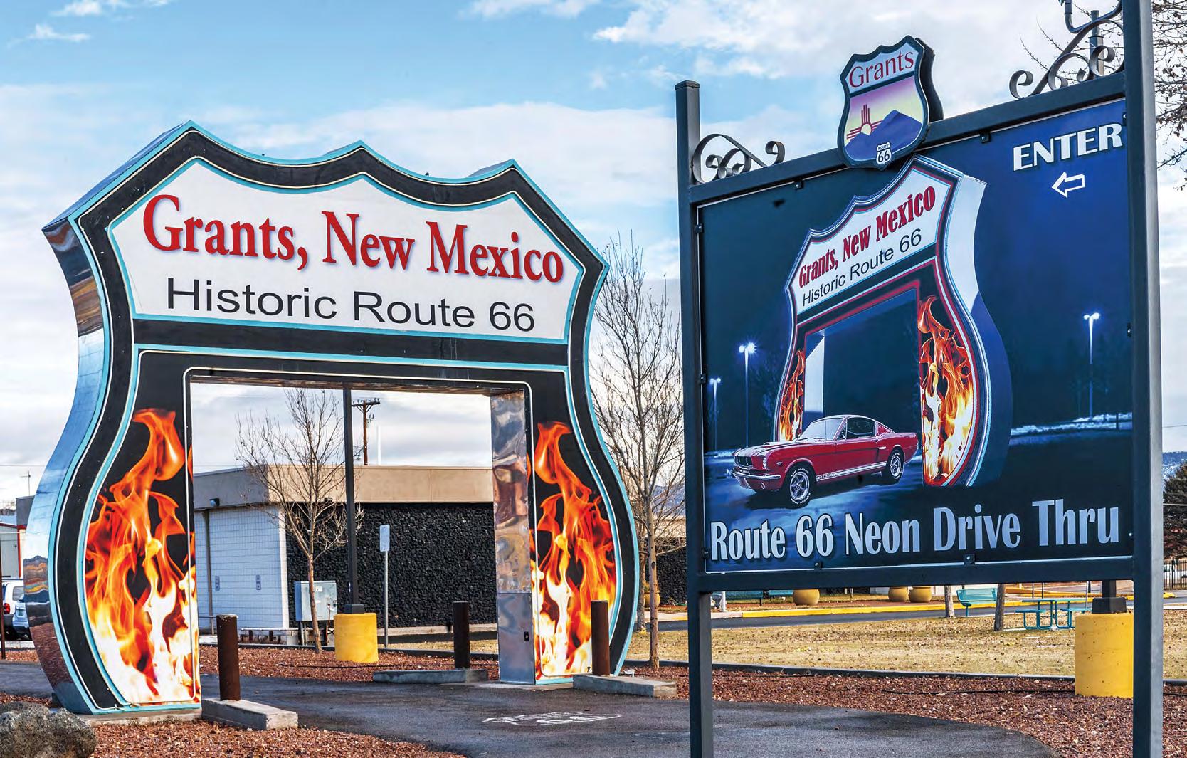 From a full-size steel windmill decorated with the wooden brands from neighboring ranches; an old VW Beetle and Ford Fairlane — “art cars” — painted to represent the iconic Route 66; signs inspired by the creative rhymes of the route’s classic Burma-Shave advertisements; antique train cars highlighting the town’s earliest roots; to a 36-foot-tall totem built by Peter Wolf Toth to honor Winslow’s border with the Navajo Nation, the First Street Pathway Park encapsulates bridging the past with the present. A tribute to community spirit and the rejuvenation of a town’s historic core.