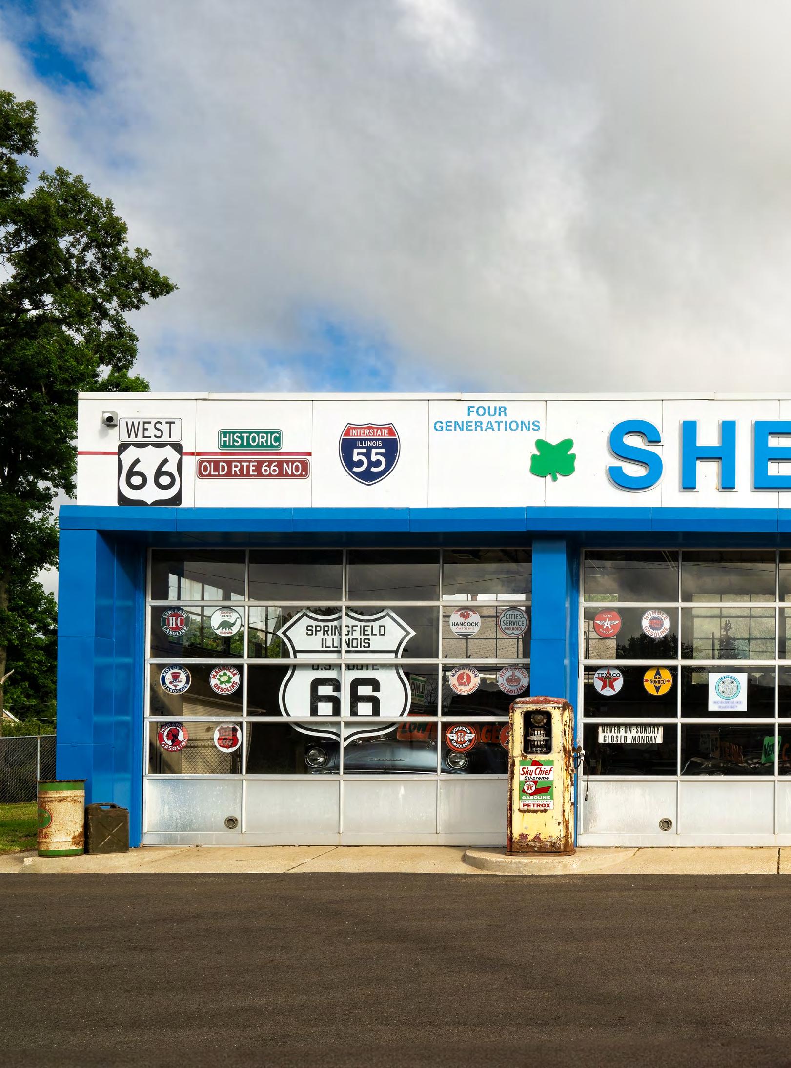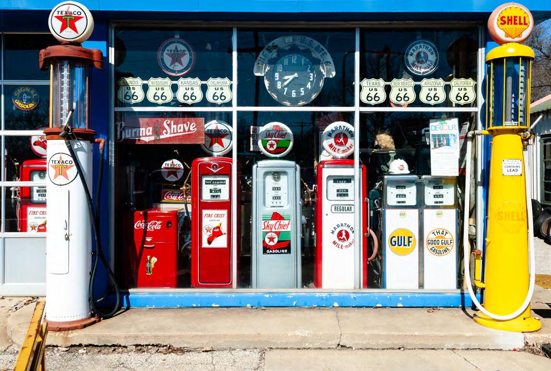 The super cool Russell’s Travel Center, located in the near ghost town of Glenrio, New Mexico, just 42 miles east of Tucumcari, the iconic Shea’s Gas Station in Springfield, Illinois, Hollow Mountain, a filling station built right into the Utah mountains, and more fill the pages of the June/July — our huge summer issue. So, this season, surrender to the neon glow and windswept plains, half curious, half content, letting the road unfold in its own rhythm. Route 66 doesn’t need to explain itself—it reminds you that wonder still waits around unexpected corners.
