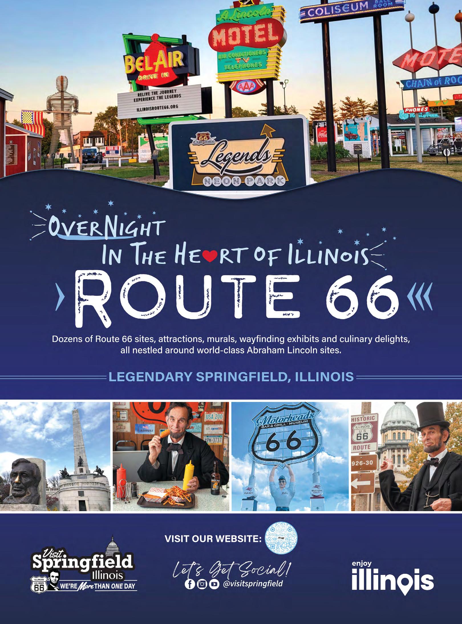 Discover a new Neon Sign Park, a Post Card Mural Trail, a giant pink elephant, the world’s tallest catsup bottle water tower, giant monuments and more along the Last 100 Miles of Route 66 in Illinois. Legends live on this legendary highway. Learn more at RiversandRoutes.com