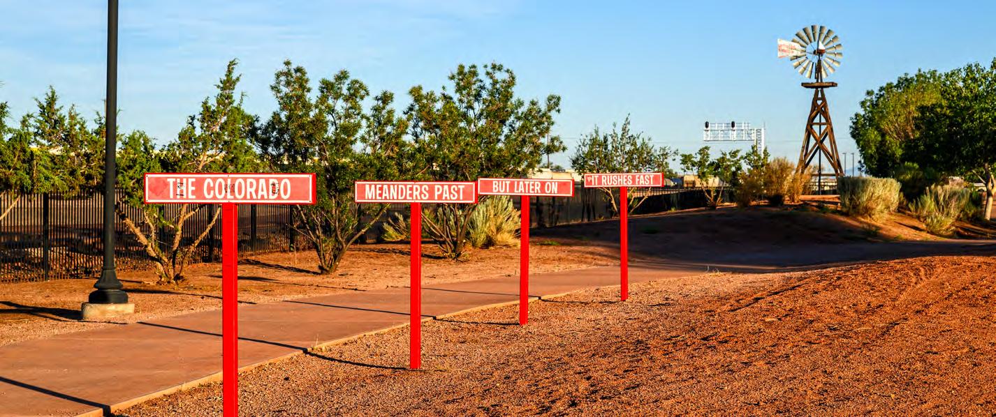 With most of the funding stemming from a turnback agreement with the Arizona Department of Transportation, the First Street Pathway Park — part of a series of revitalization projects — was where Winslow displayed its cultural history on a pedestal, with a looping two-mile-long footpath winding through eye-catching attractions, greenery, and artistic flair, for everyone to see and experience for themselves.