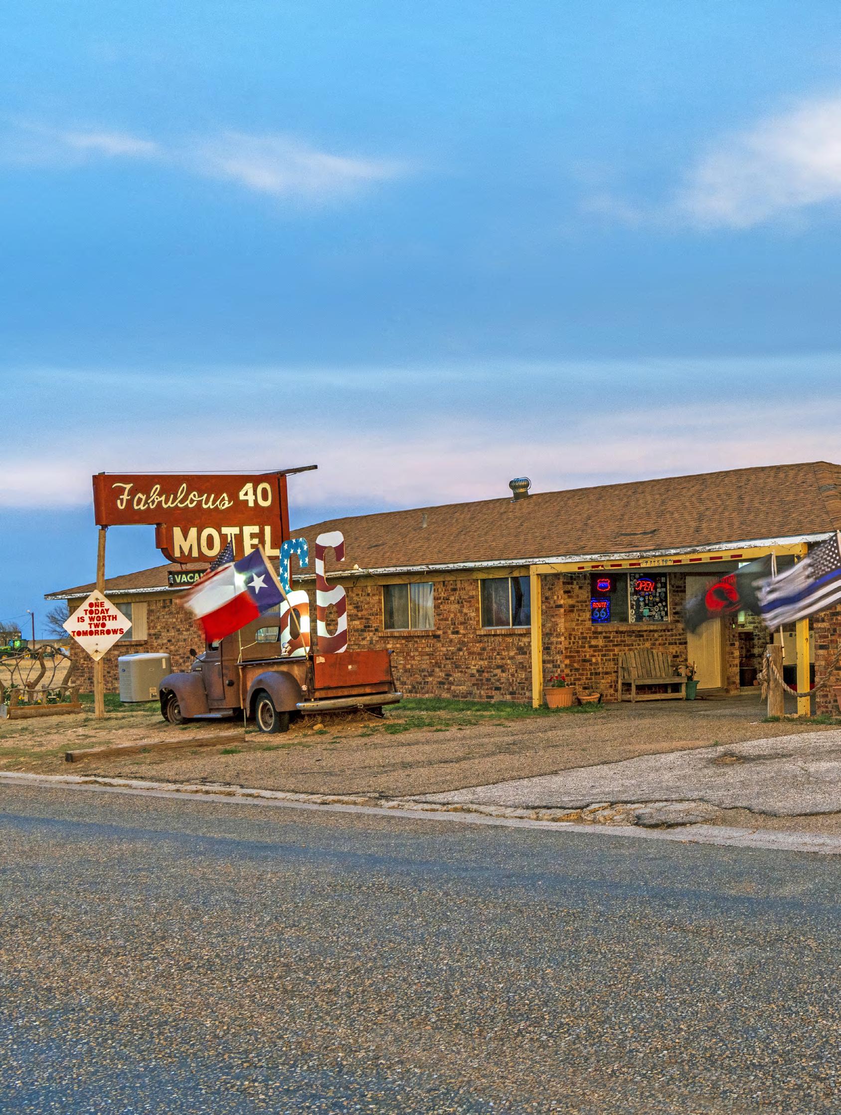 Discovering offbeat, unusual places to rest weary heads has always been a big part of the fun when traveling down Route 66. Today, in the heart of the vast Texan plains, where the horizon stretches endlessly under the big, open sky, you will find the Fabulous 40s Motel, a time capsule that is waiting to welcome you with open arms and retro charm.