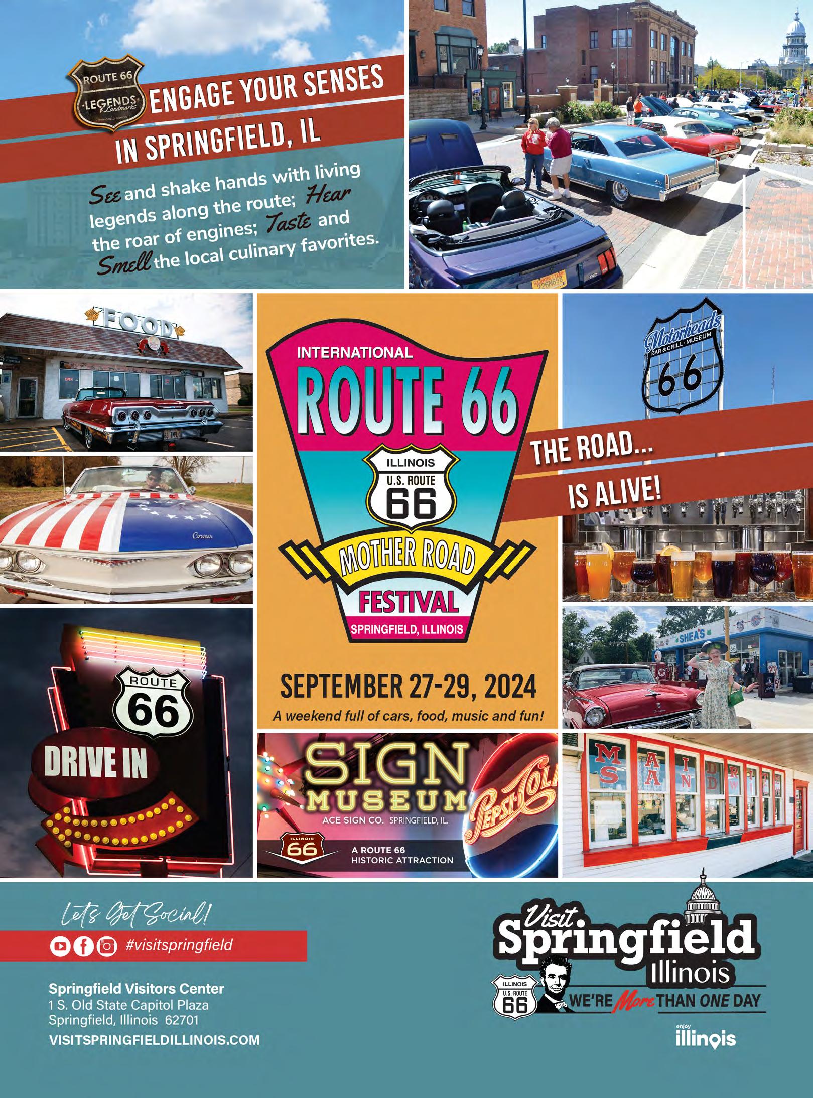 Discover a new Post Card Mural Trail, a giant pink elephant, the world’s tallest catsup bottle water tower, giant monuments and more along the Last 100 Miles of Route 66 in Illinois. Legends live on this legendary highway. Learn more at riversandroutes.com