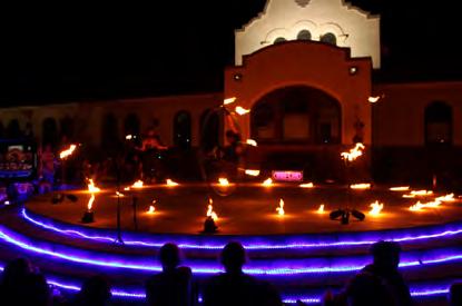 “It’s the Indian capital of the world,” DeArmond said. “[And] Richardson’s Trading Post down the street has the best Indian jewelry.” From his rooftop post on West Coal Street, Dude Man enjoys the best view in town—a sweeping look over Pueblo Revival architecture, busy streets, and the daily mix of tourists and locals.