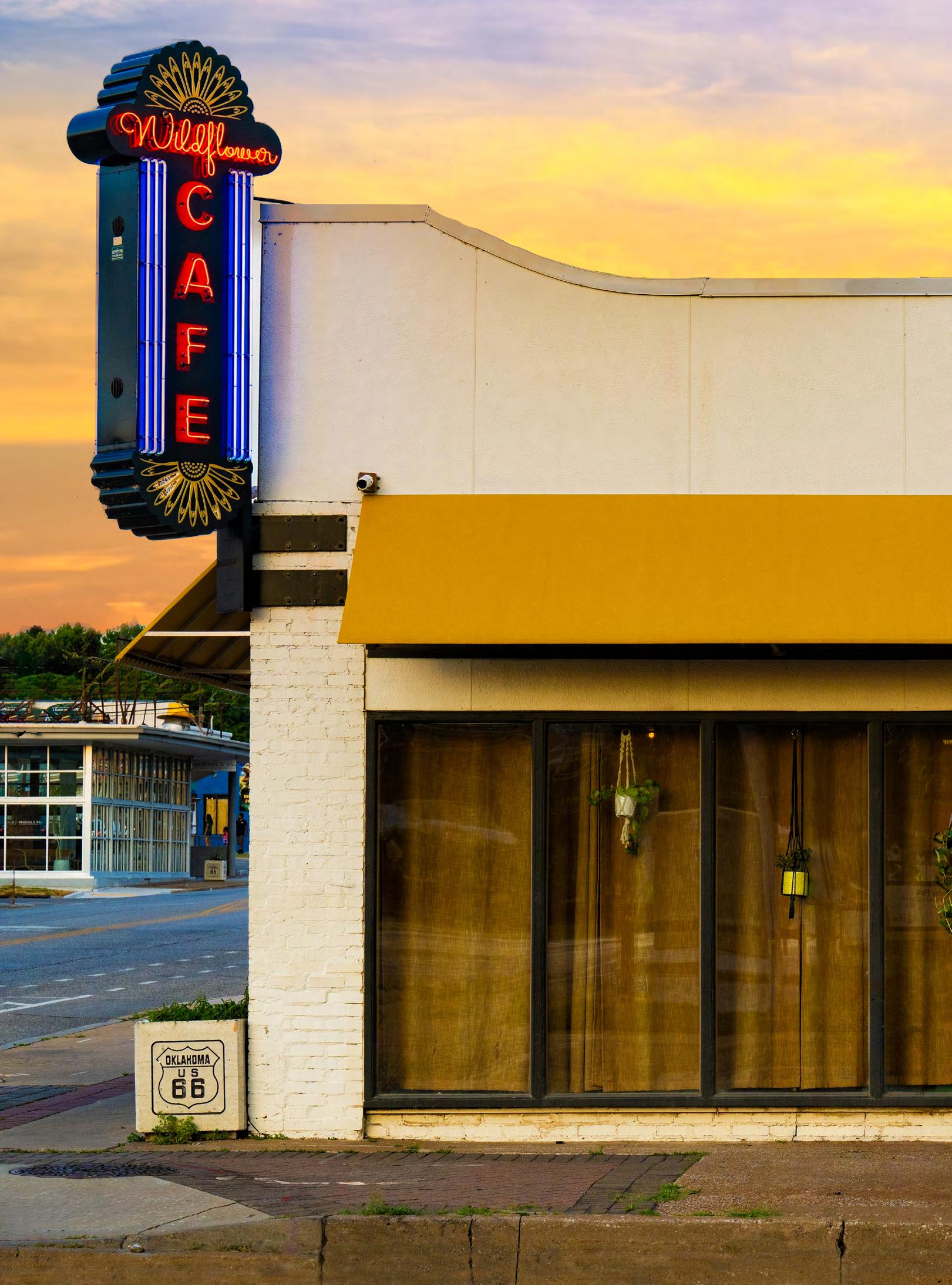 Opened in May 2021 by passionate local entrepreneur Heather Linville, Wildflower Cafe has quickly become a Tulsa hotspot along America’s Mother Road. Set in the trendy Meadow Gold District, the vintage-chic space is more than a café, it’s a bright, community-driven haven with a story all its own. Like so many dreamers before her, Linville carries on the tradition of welcoming both locals and travelers into the warmth and charm of her inspired vision.