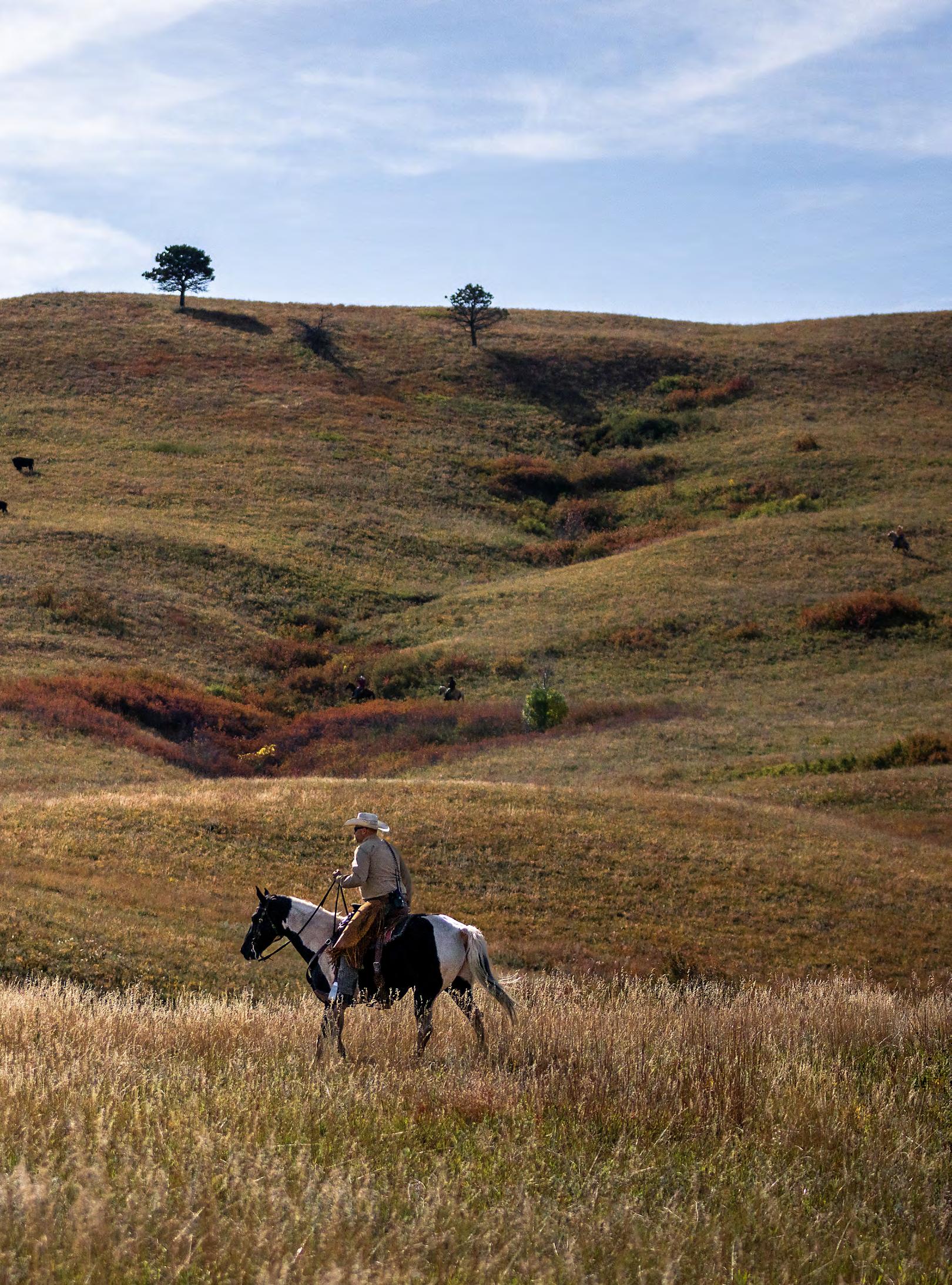 Robert (Bob) Duane Lantis has been riding the RoundUp since 1971, now a family tradition. Four generations of Lantis family and 10 horses had posted up at French Creek Horse Camp, the autumn air laced with burning wood and ponderosa pines. Lantis serenaded his great grandchildren beside the campfire. When Lantis’ gravelly voice stopped, another cowboy, Steve Olivier, plopped his grandson onto his lap and wailed Garth Brooks’ “Wolves.” These are some of the rhythms and rituals of life on the Great Plains.