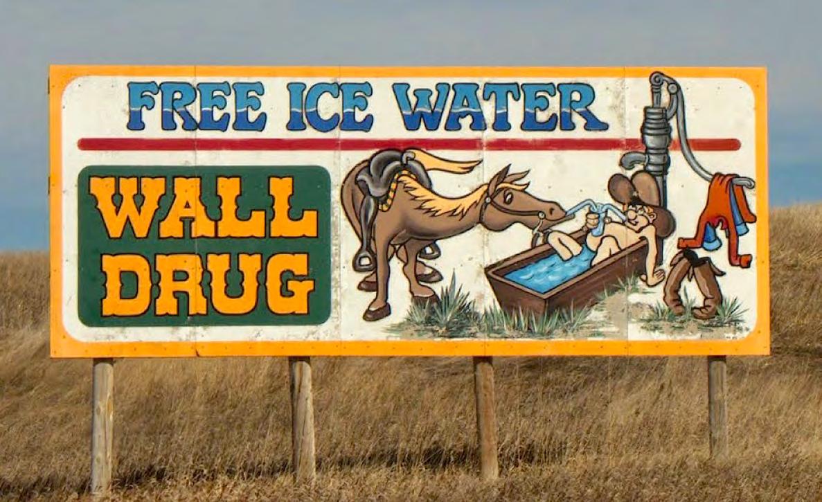 “‘Free Ice Water’ taught me my greatest lesson: that there’s absolutely no place on God’s earth that’s Godforsaken. No matter where you live, you can succeed, because wherever you are, you can reach out to other people with something that they need,” the late-Ted Hustead had mused. Wall Drug exemplifies how generosity and service can transform a business, demonstrating that offering kindness without expectation — like providing free ice water to weary travelers — can create lasting value. The core philosophy is simple yet profound: if you can brighten someone’s day or meet a basic need, do so. The belief that opportunity exists everywhere is an embodiment of American values and roadside travel: the intersection of hospitality and commerce allows something as simple as free ice water to become a marketing tool and a genuine and authentic service.