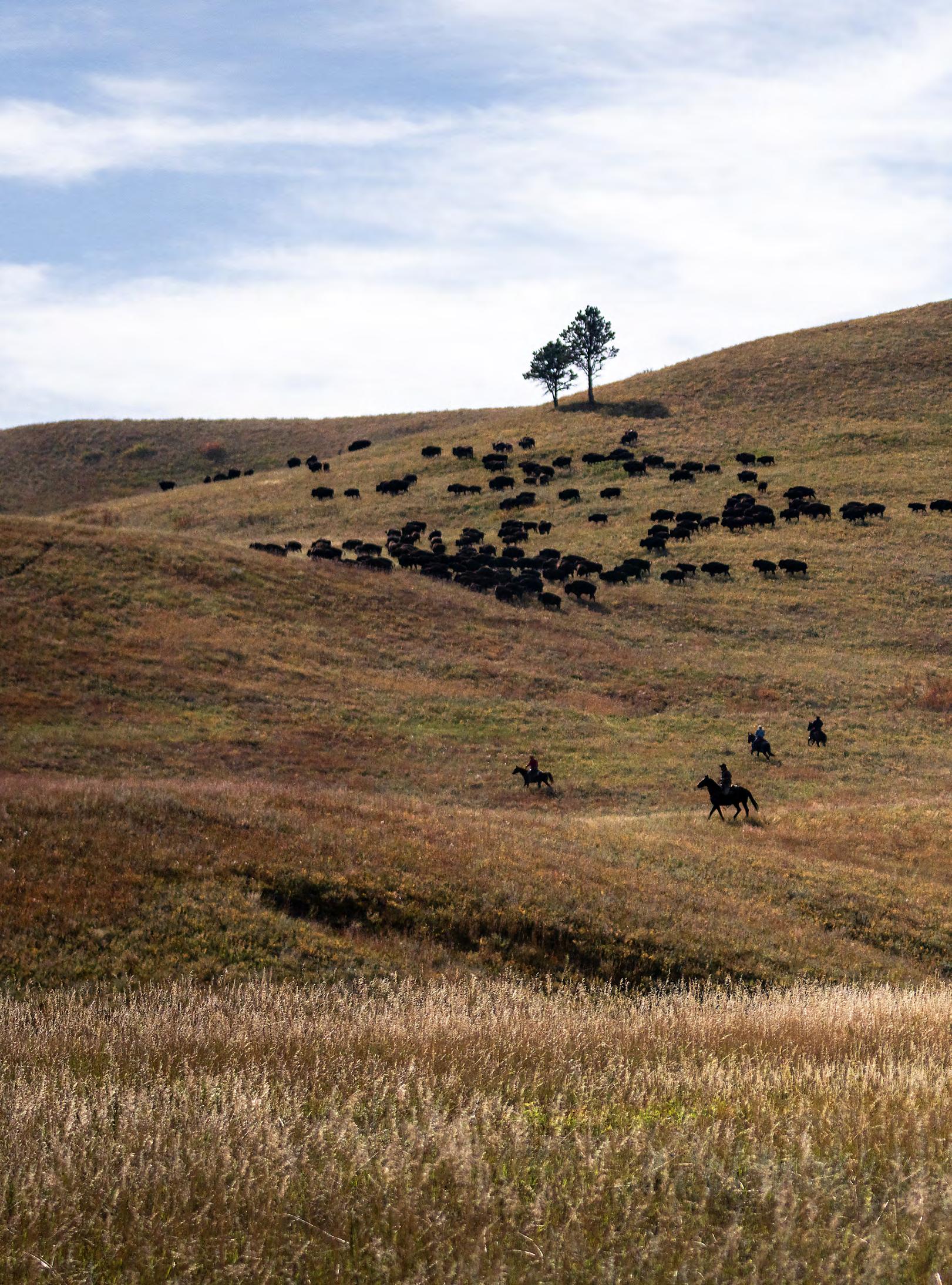 This cinematic stretch of land meanders towards the Lakota’s Paha Sapa — The Black Hills — some of the most sacred of all Sioux land. This is where the Sioux Nation and wild beasts once dominated the northern Plains, where they followed herds of 80,000 buffalo.