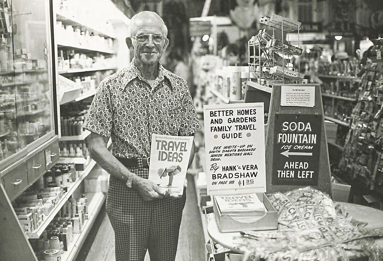 After graduating pharmacy school in 1929, Theodore (Ted) Hustead spent two years working for other druggists before he and his wife Dorothy decided it was time to forge their own future. With a $3,000 inheritance left by his father, Ted and Dorothy drove across Nebraska and South Dakota in their Model-T, searching for a place to settle and call home. The country felt much bigger then. “As we searched, we were sure of two things: we wanted to be in a small town, and we wanted the town to have a Catholic church. We wanted to be able to go to mass every day,” Ted Hustead, who passed away in 1999, recalled in an excerpt from Guidepost Magazine. The Husteads found what they were looking for in Wall: a small town with a Catholic church and a quaint drugstore for sale on the west side of Main Street. Despite the doubts of their extended family, including a cautionary remark from Ted’s father-in-law that Wall was “about as Godforsaken as you can get,” the couple remained resolute and determined to pursue the opportunity.