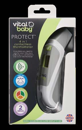 Each temperature reading will be shown in 2 seconds, and it also features a last memory recall function. The Vital Baby® PROTECT™ 4-in-1 contactless thermometer gives you ultimate peace of mind by allowing you to look after and protect your little one’s wellbeing all in one convenient device.