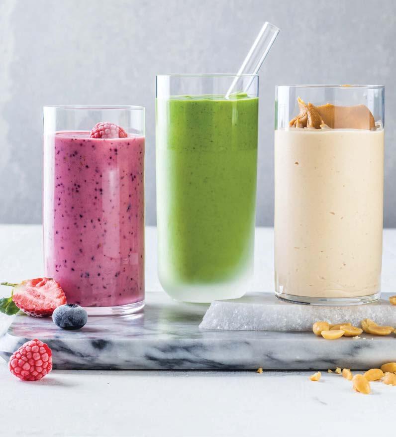 crepes Strawberry & yogurt parfait Yogurt granola bowl Super seed & nut mix Home-made yoghurt Mixed berry smoothie Green smoothie Peanut-butter smoothie 50 52 54 55 56 57 61