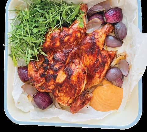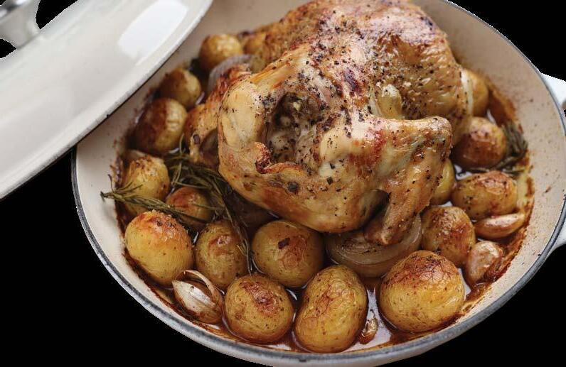 Perfect basil pesto pasta Spatchcock chicken with feta, herbs & sundried tomatoes Mediterranean one-pot chicken & rice Seafood paella Buttery roasted chicken Lamb rib pasta Sticky chicken drumsticks Creamy ham, cheese & egg pasta Chicken curry pie Creamy chicken livers Crispy pork belly & mash Currie samp & beans Peri-peri chicken hearts Cacio e pepe Calamari wrap Mangwinya (fat cakes/vetkoek) 82 83 84 86 88 89 90 92 93 94 96 97 98 99