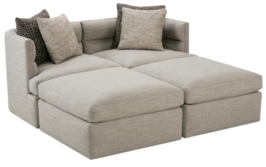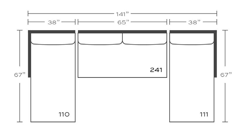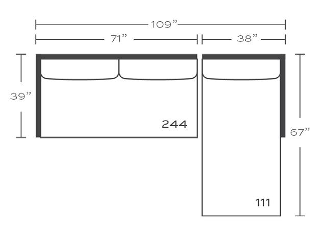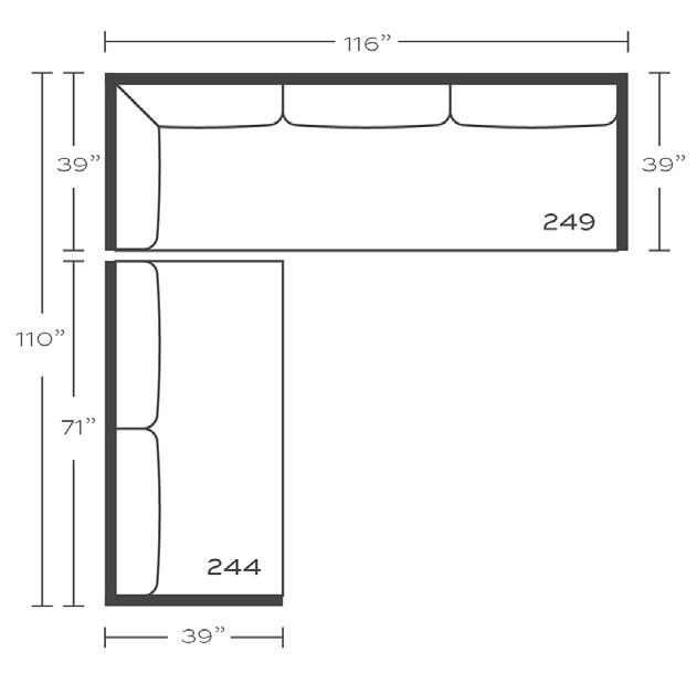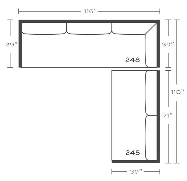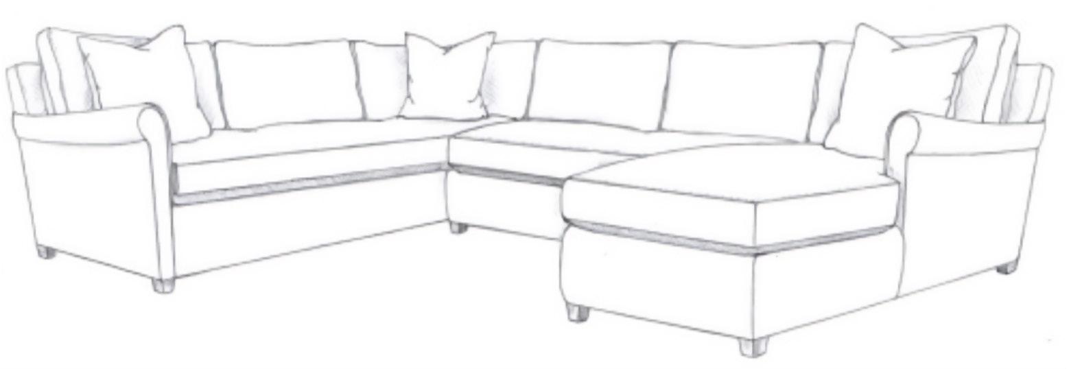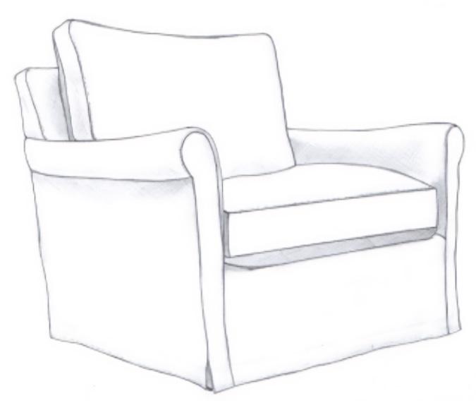 Back pillow and throw pillows are standard with micro-flange. NM, RS and PS pattern types will have seams down center of skirt, seat, in-back and outback at back pillow break.