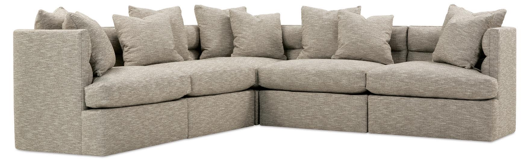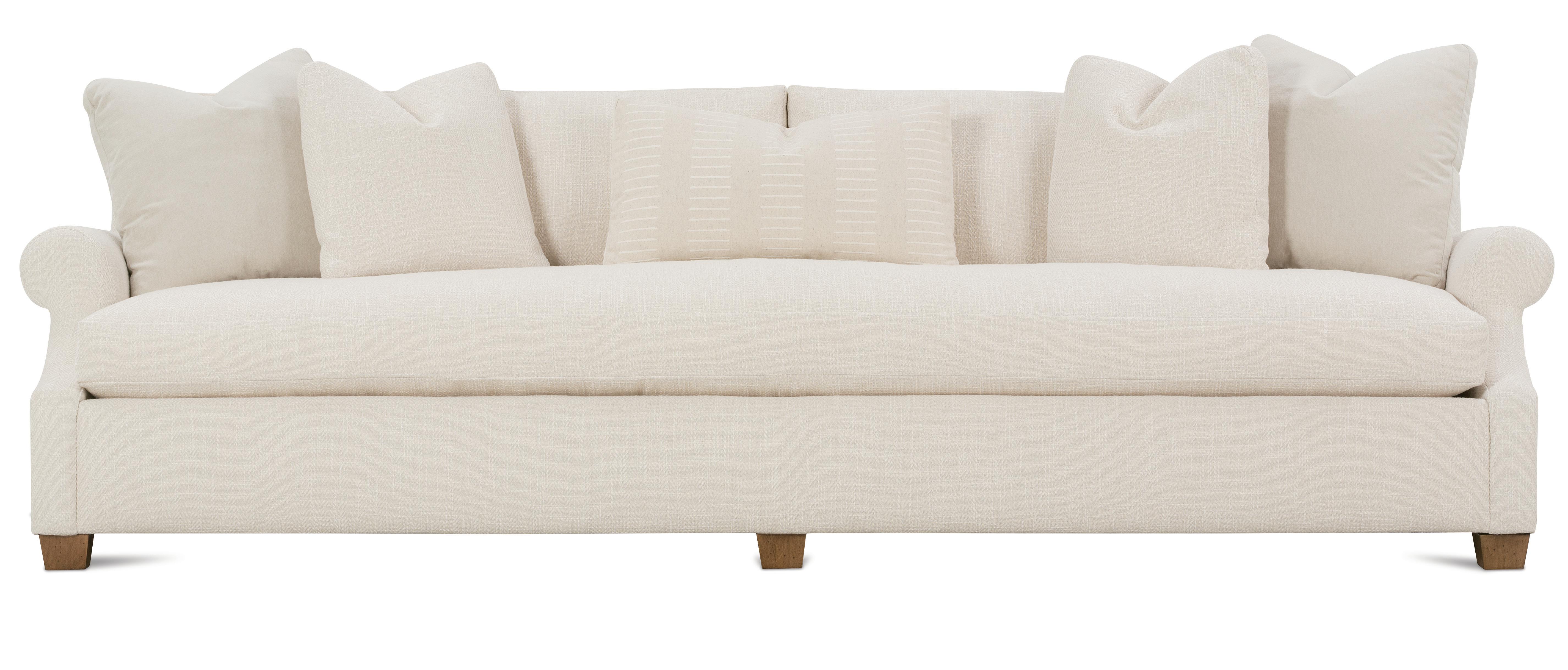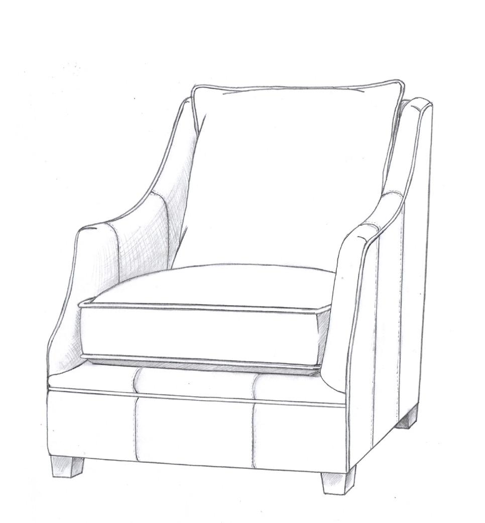 Back pillow and throw pillows are standard with micro-flange. NM, RS and PS pattern types will have seams down center of skirt, seat, in-back and outback at back pillow break.