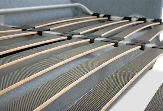 Equipped with two zones of bowed birchwood slats to enhance individual comfort for each person
