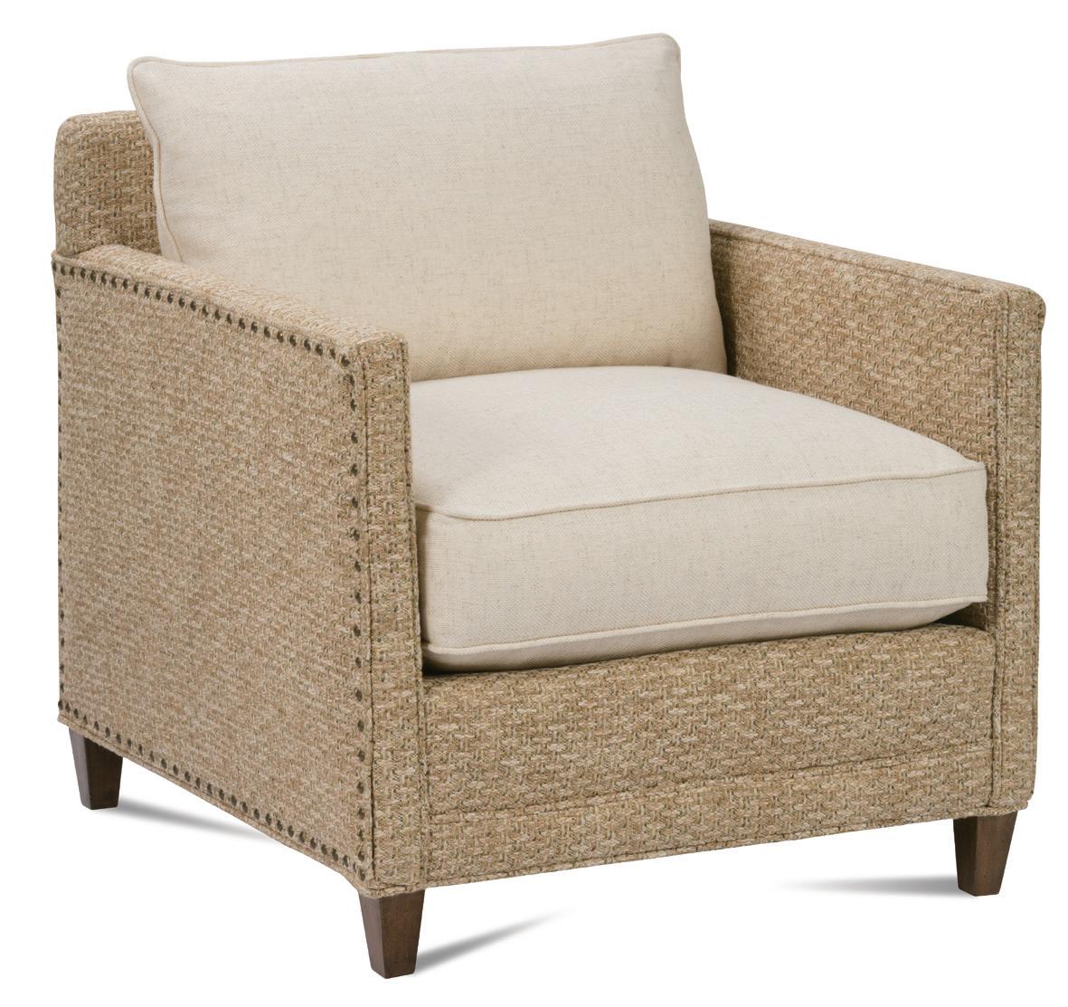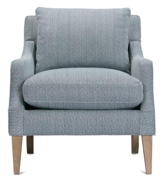 Shown in fabric 27010-37, Seat/Back shown in fabric 10798-19 with brass nailhead. Latte wood finish.Standard Features