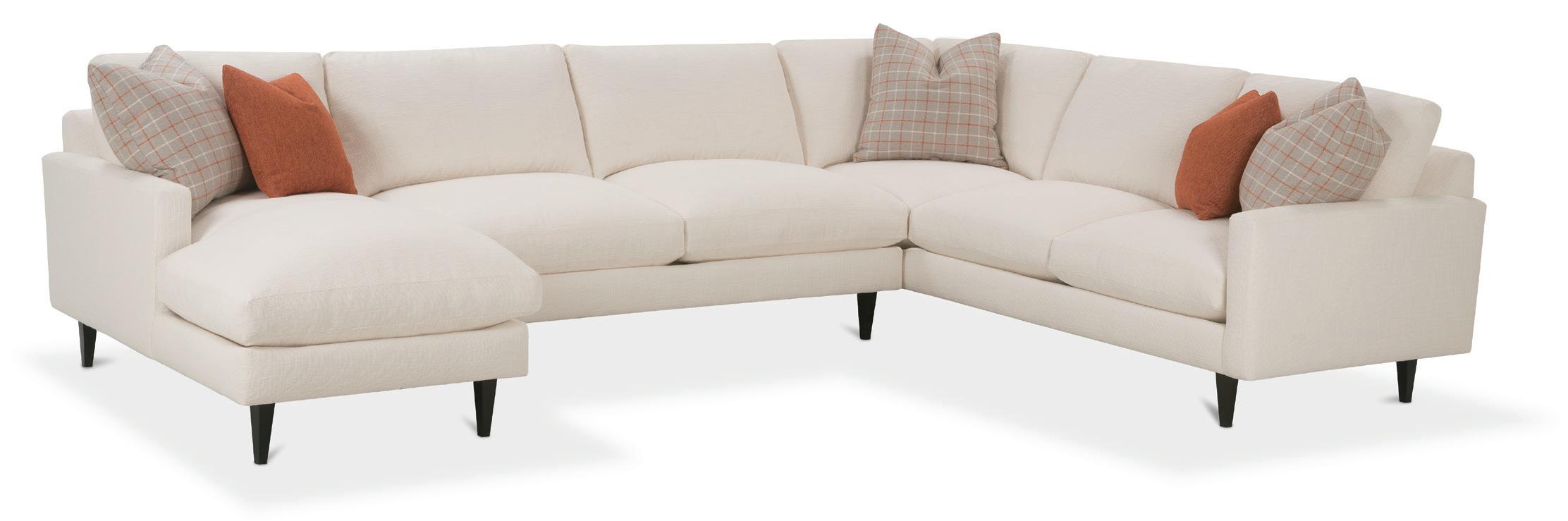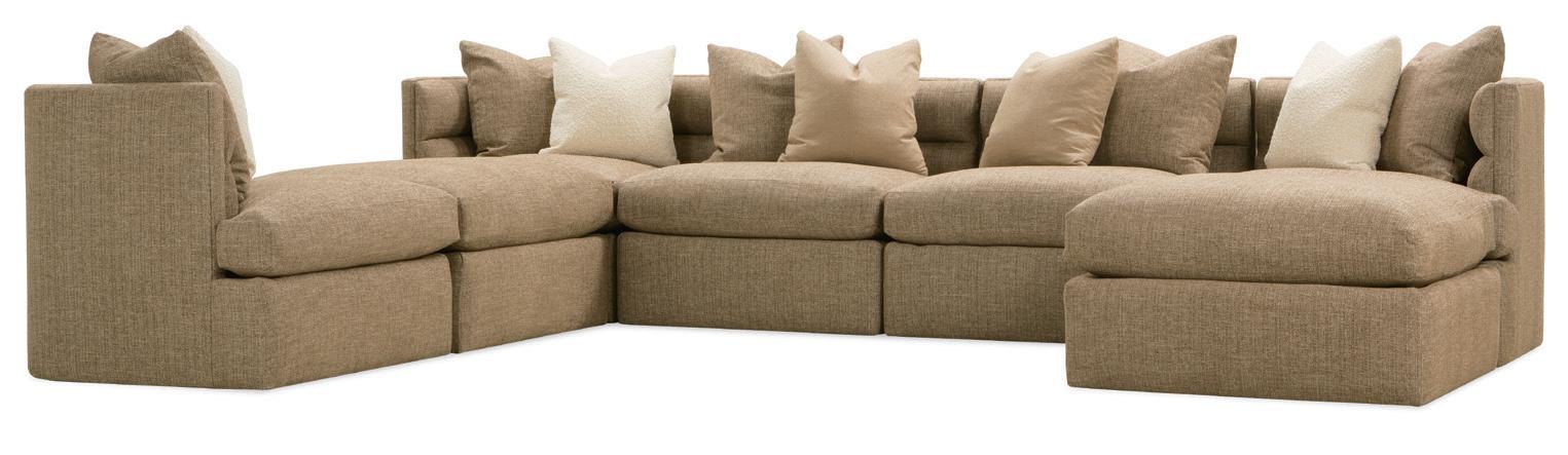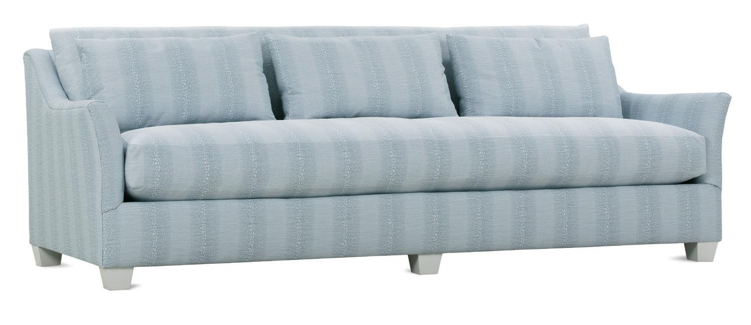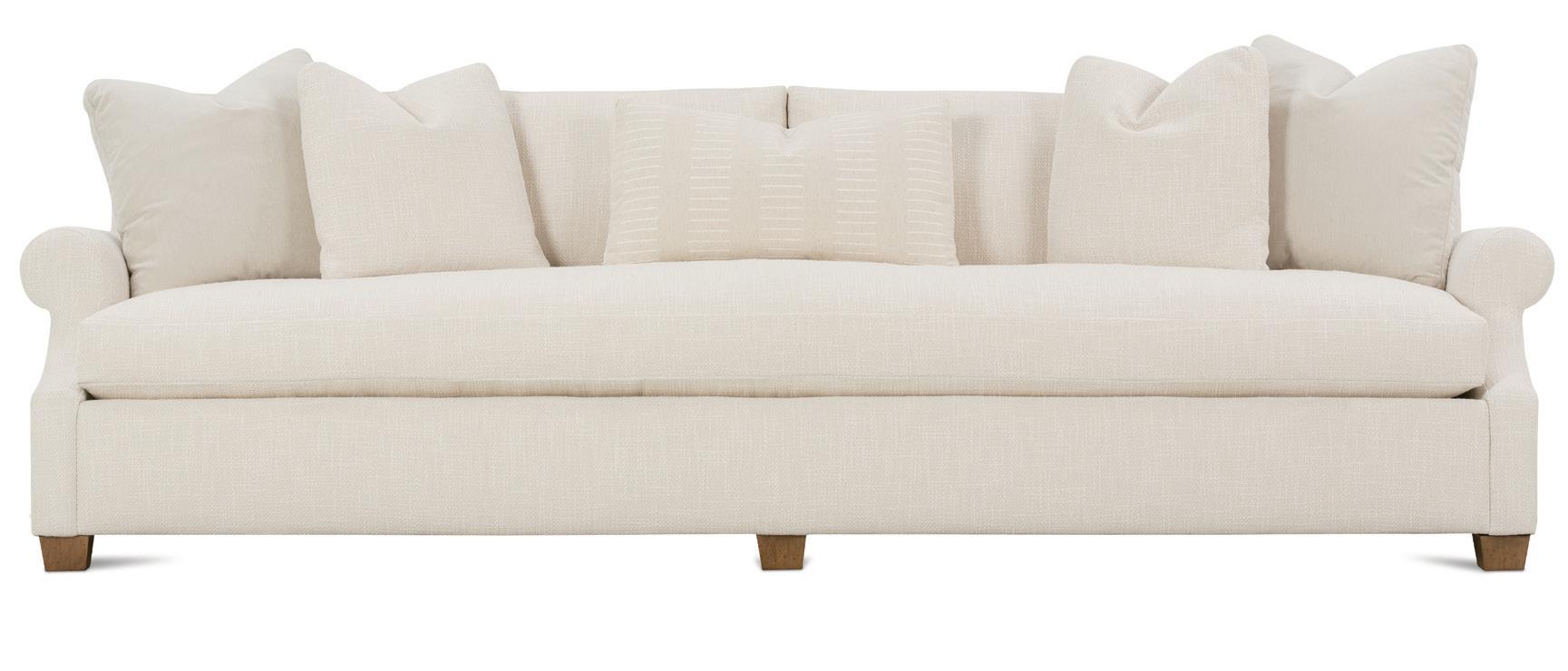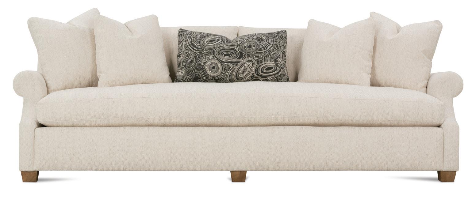 Back pillow and throw pillows are standard with micro-flange. NM and RS pattern types will have seams down center of skirt, seat, in-back and outback at back pillow break.