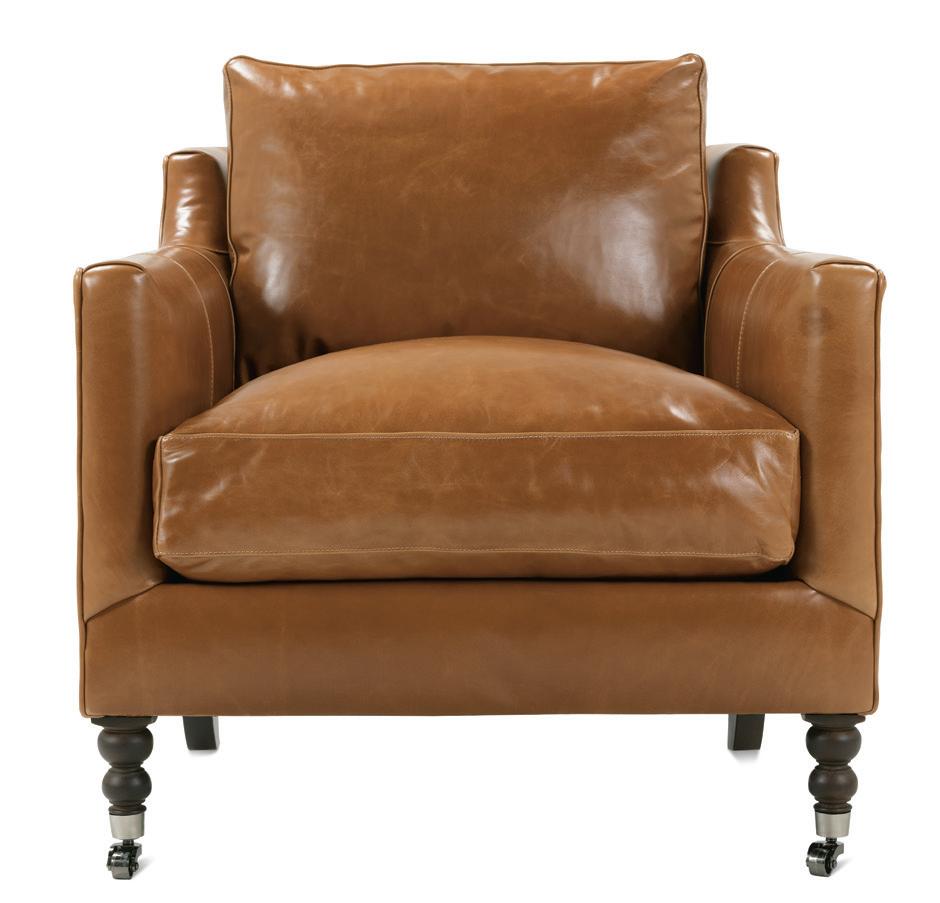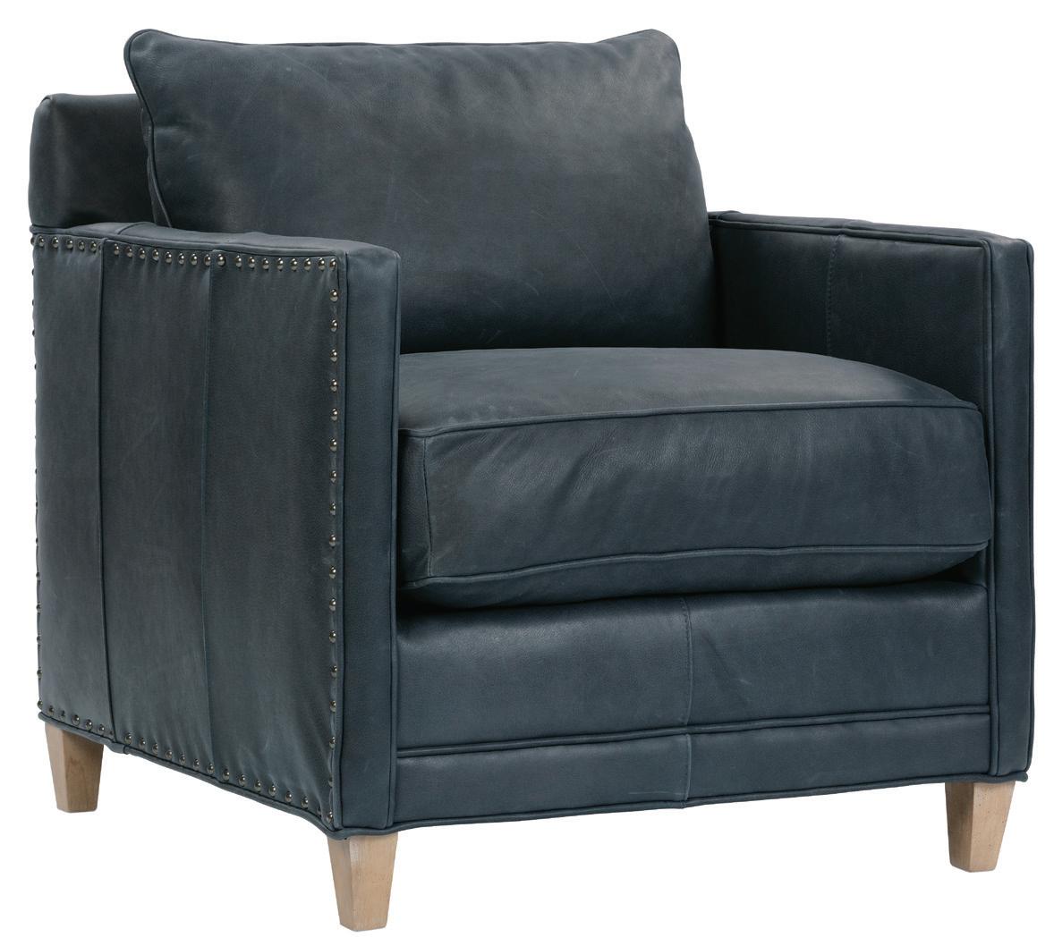 Shown in leather KL230-04. Pewter nailhead. Washed oak wood finish.