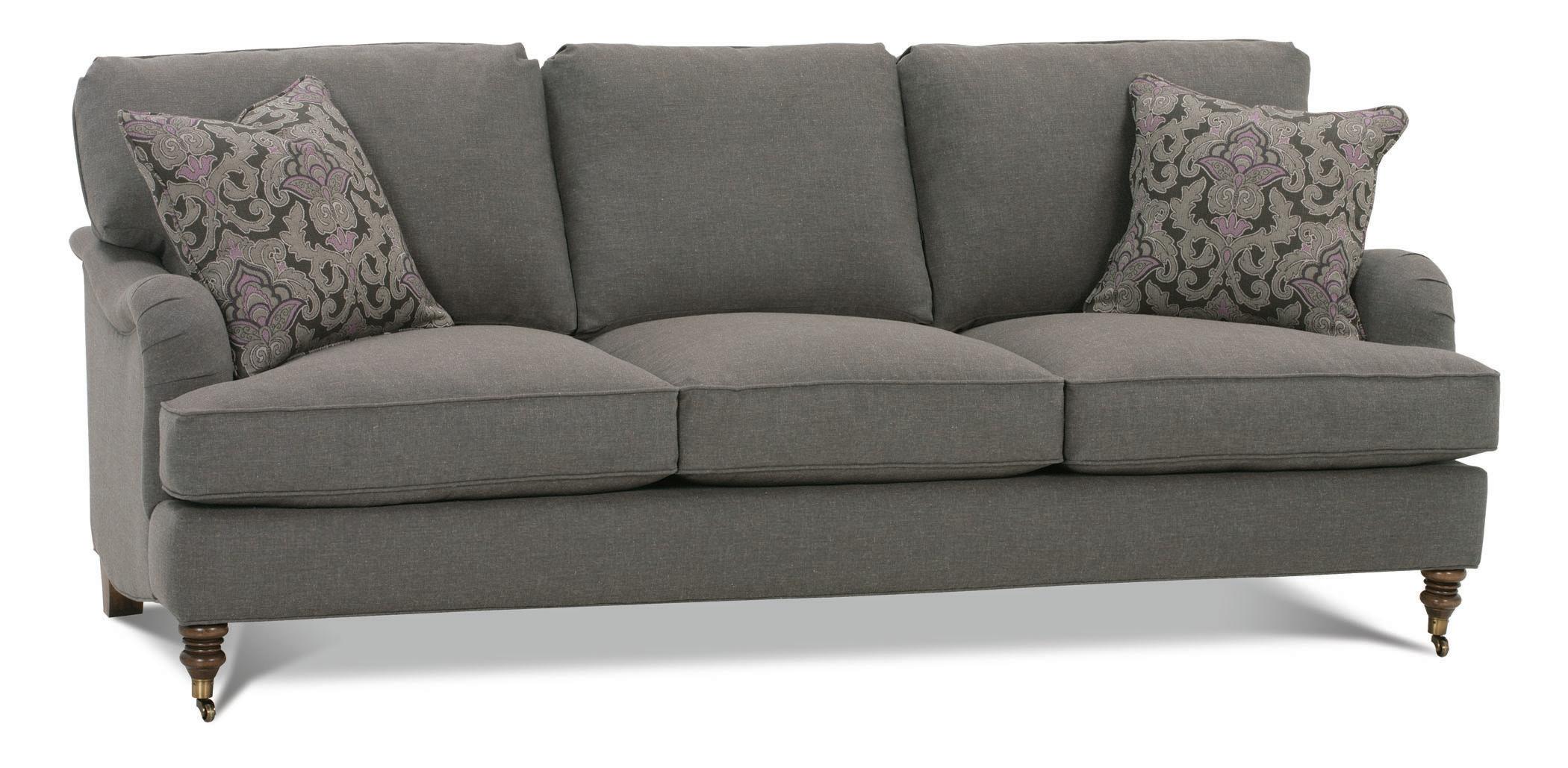 Sofa in fabric 12674-55. Antique black leg finish, caster leg and brass caster.