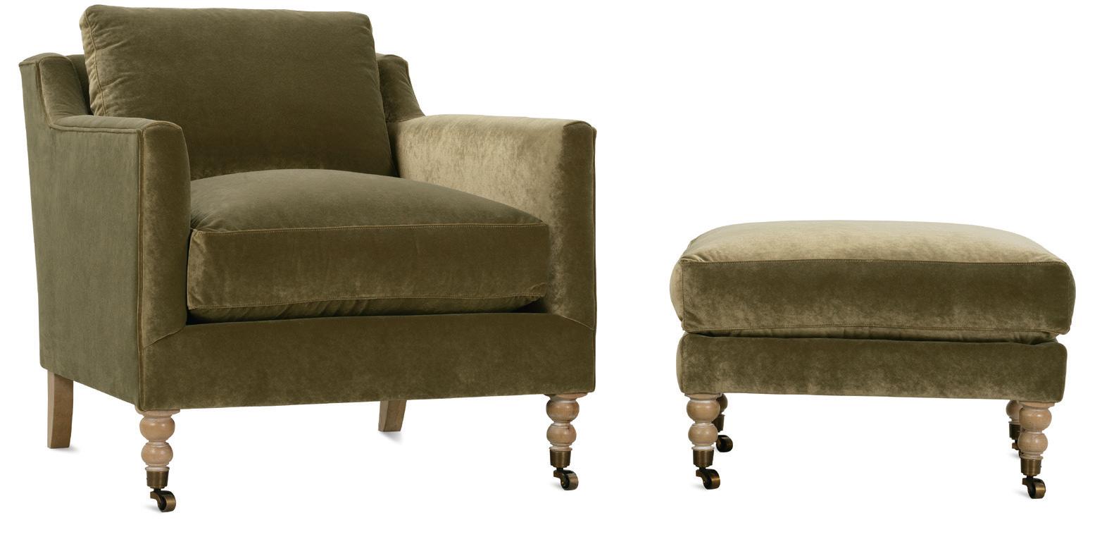Shown in fabric and throw pillow 105CR-43. Carob wood finish.