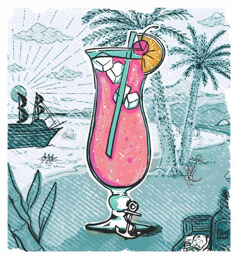 40 LIBATIONS Rum is often associated with pirates, but hot chocolate was actually the favorite drink of buccaneers. From Captain Grog to Captain Morgan, rum has a long history on the Emerald Coast and beyond.