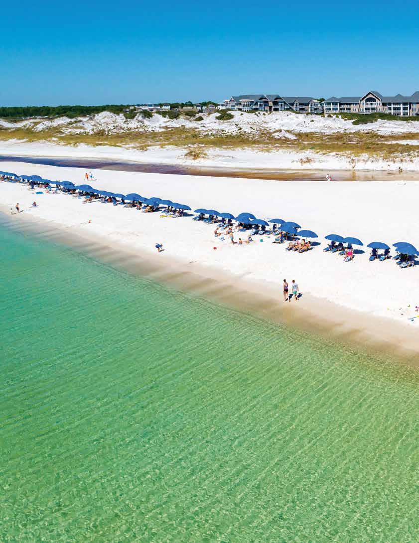 For those who visit and those who never leave, the connections are intimate and last a lifetime.OPPOSITE PAGE Top Row : Watersound Town Center Pavilion, Watersound Beach Club, Panama City Beach Conservation Park. Middle Row: Watersound Bonfire, Gulf of Mexico, Watersound Beach Club. Bottom Row: Aaron Bessant Park, Shark’s Tooth Golf Course, Fish Out of Water Restaurant. THIS PAGE Watersound Origins Community, Watersound Monarch Art Trail.