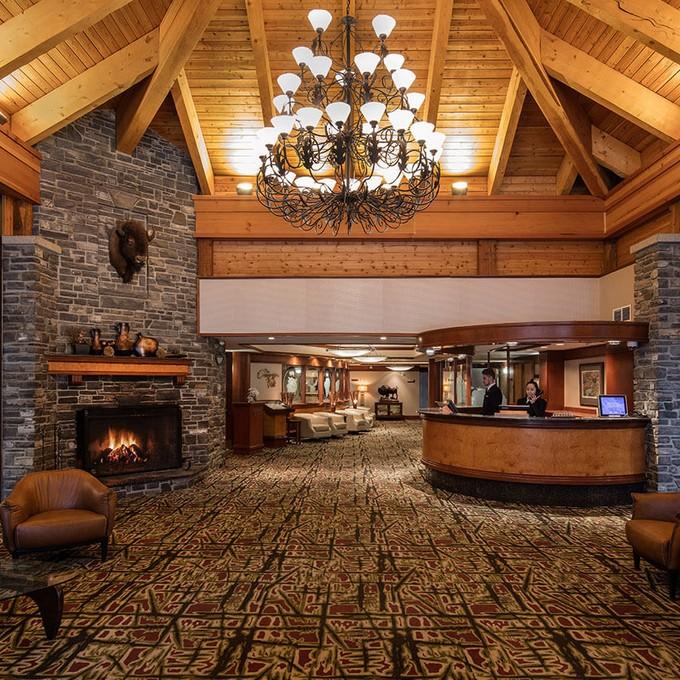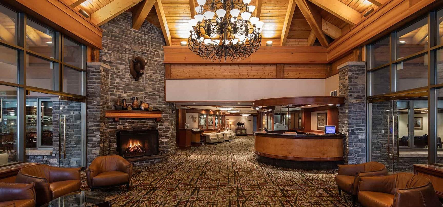 - Stone fireplace in the lobby