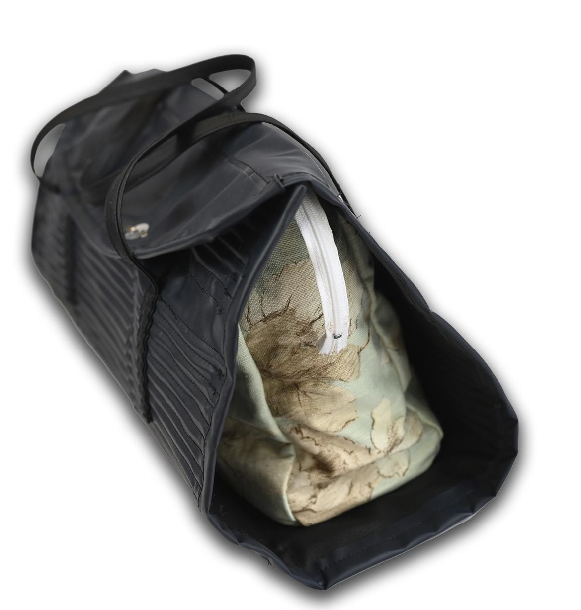 My context for my coursework was ‘travel’. My client wanted a bag suitable for travel that is fully secure. She also had specific requirements for the colour, structure, and size of the bag. To meet all the requirements, I made an inner bag purely for storage and an outer bag for protection. The material I used for the two bags are different, I used cotton to made inner bag to keep it lightweight and to be able to create a beautiful looking bag. The outer bag I used PVC, this is because it’s durable and waterproof. The PVC outer bag was lined with metal rods for added protection from thieves who might cut a bag to get at the contents. The two bags join to create one bag that provides protection whilst travelling and cotton beautiful bag for once at your destination.