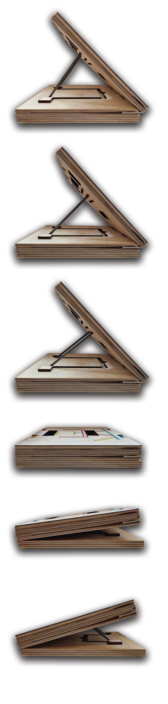 My project is a laptop stand that folds flat and is easily adjustable to different heights so it can be used comfortably sitting or standing. I also made a bag that can contain the stand and your laptop.