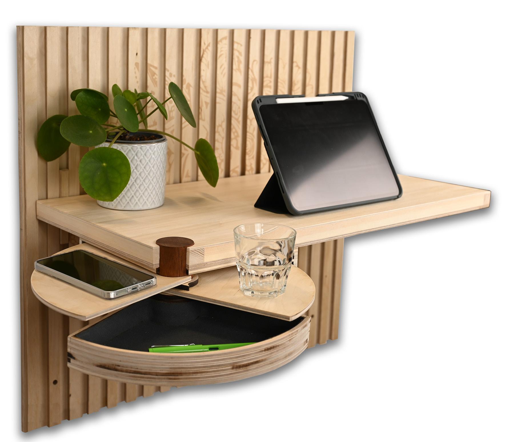 For my A-Level Design and Technology project, I designed a sustainable wall-mounted desk inspired by the Golden Ratio to optimise space in a modern working environment. I explored mechanisms such as organ stop-inspired peg systems for adjustable height and used hollowed cardboard inserts to reduce weight while maintaining strength.