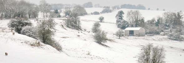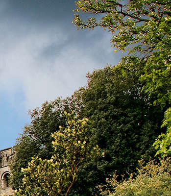 Stage 5. This repeats stage 3 but now using elements from other images. In this instance it was a case of adding two images that contained suitable trees and bushes taken in similar lighting conditions, and time of year, to be used for the corner foliage frames. The image (right) taken at the abandoned Tynham village in Dorset was used for the top left corner by masking out its main church and headstones leaving just `some’ of the overhanging tree branches and leaves. The resulting ne detail mask allowed the sky to show through between leaves without colour fringing. In its original form the leaves were too dark, they were lightened using a clipped `Hue and Saturation Adjustment Layer’ also to adjust the green colour values of the leaves to achieve more pleasing visual result.
